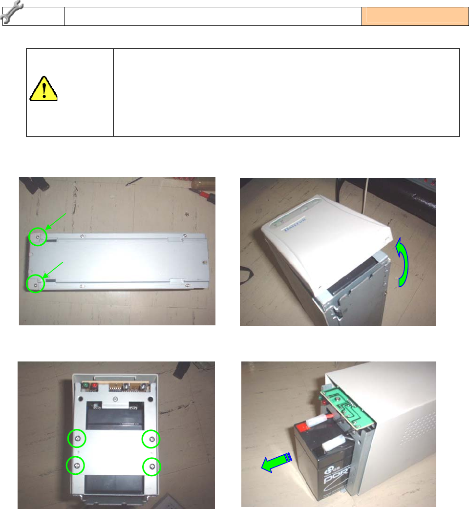 1) 卸下 UPS 底下的 2 根螺丝。 2) 打开正面的盖子,卸下来。