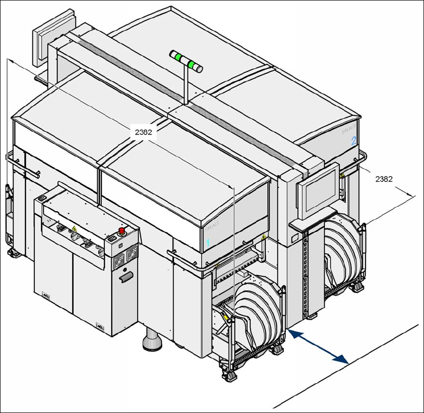 *) 计算单位面积上的负荷时,包括贴片机每一侧附加的 0.5 m 的工作场地和一个附加的临时负荷, 300 kg