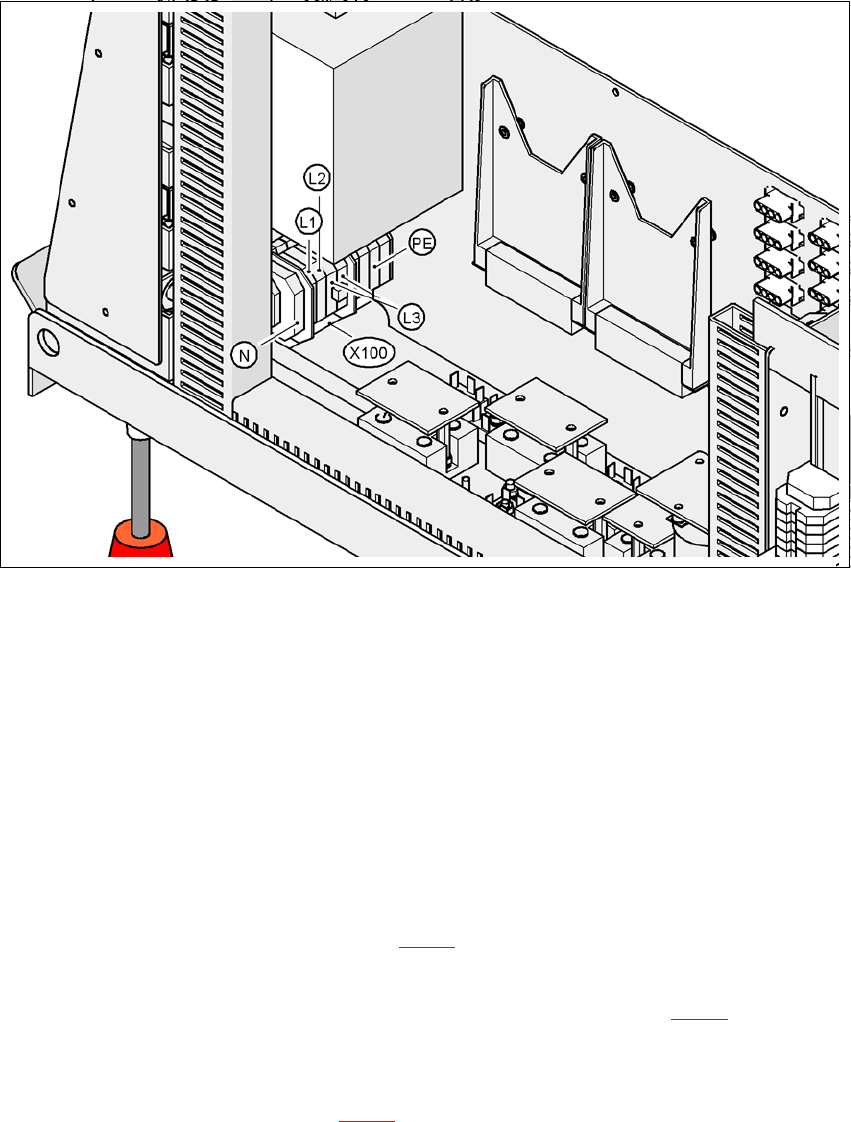 Æ 将电源电缆穿过成一定角度的电缆密封套,连接到终端面板 X100 (见图 4.4 - 4 中的 X100)