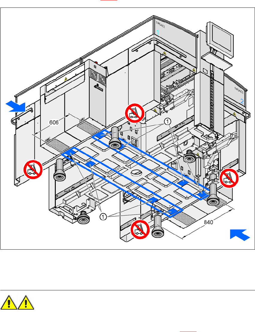 Æ 使用升降叉,抬高贴片机约 35 cm,以免降低贴片机时,双脚意外受伤。