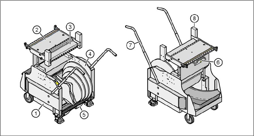 6 元件的处理 SIPLACE HF 系列用户 手册 6.3 料车 软件版本 SR.505.xx 2004 年 7 月中文版 262 请注意: 外部安装时,需要为料车配上一个 外部电源 (见第 6.3.5 节,第 267 页) 。 图 6.3 - 2 PCB 传送高度为 950 mm 的料车 6 (1) 传送高度为 830 到 950 mm 的导柱内的孔 (2) 料车台 该车的设计非常注重人机工程学和 安全操作。 - 料车能够轻松移动。…