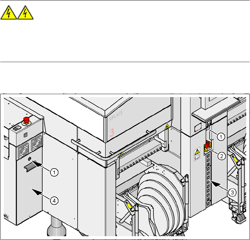 3x415 VAC ± 5%, 50/60 Hz 主电压。这意味着,贴片系统的某些部件带有可能致命的电压 -