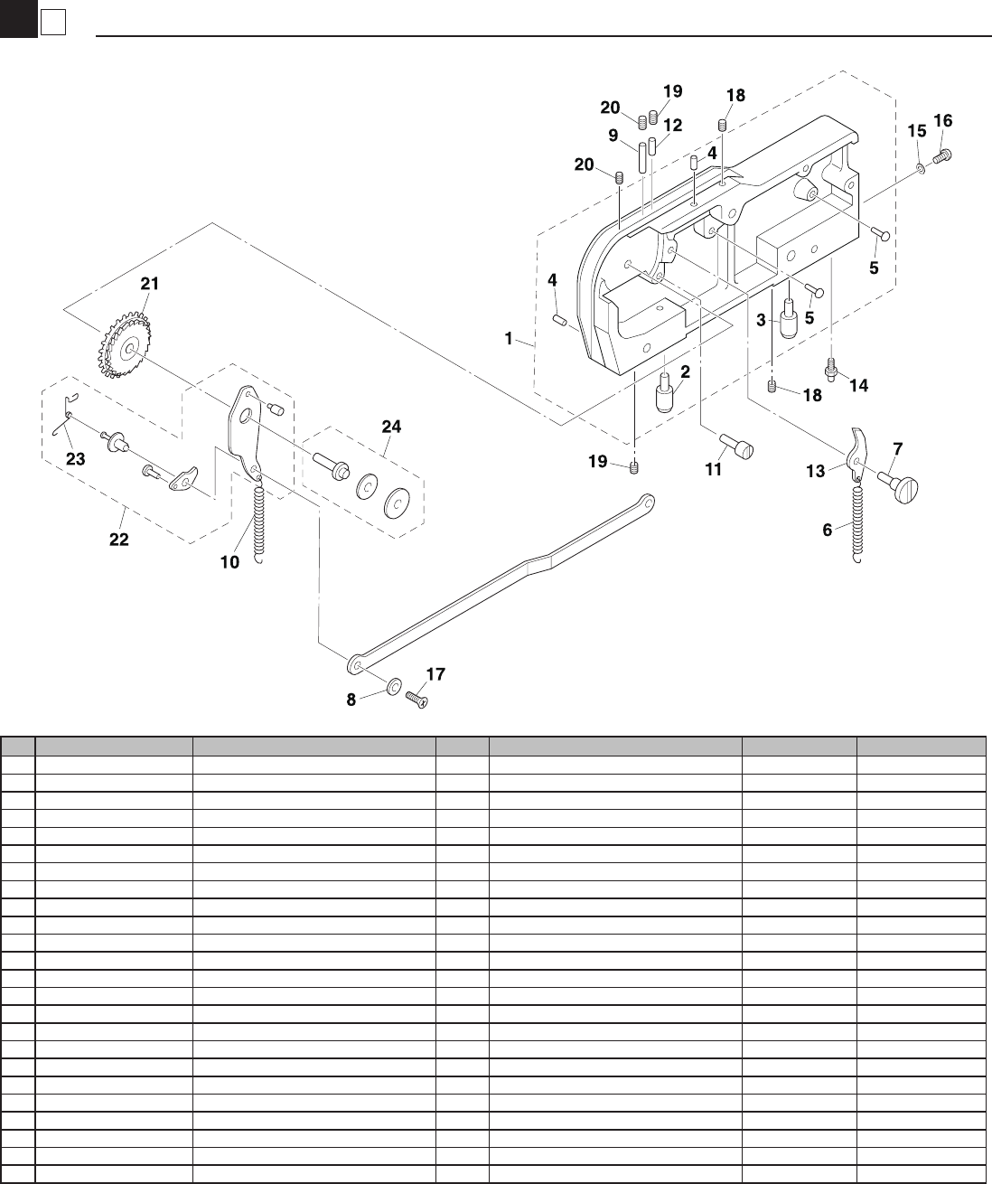 24 K87-M212L-00X SPROCKET AXIS ASSY 1