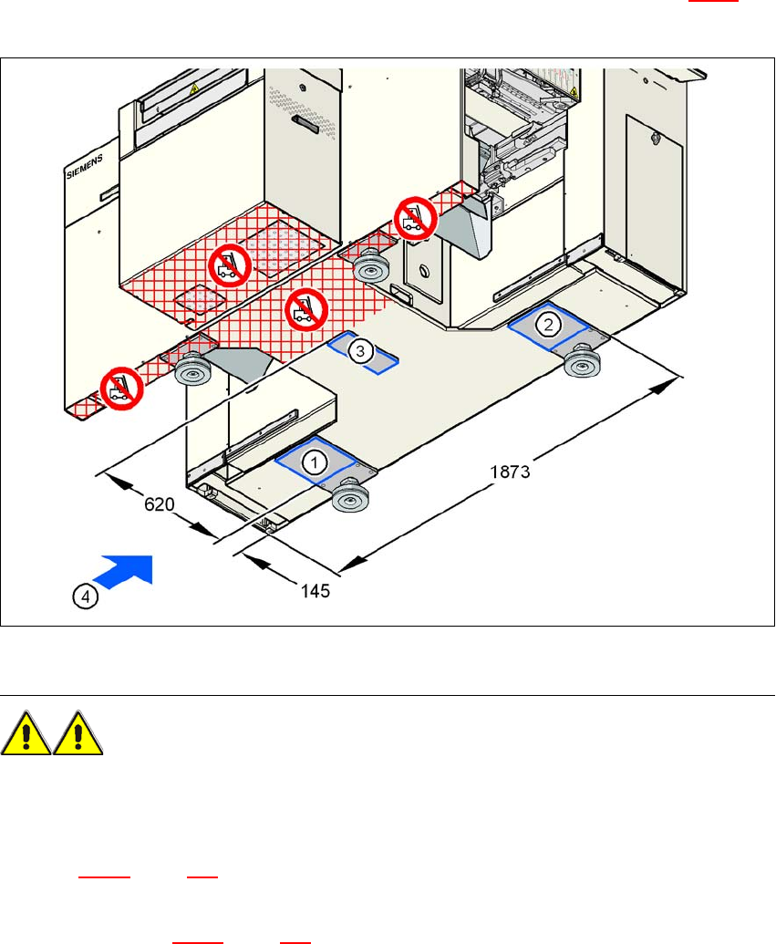 → Setzen Sie den Gabelstapler an der Seite der Stromversorgung des Automaten an (Pos. 4 in