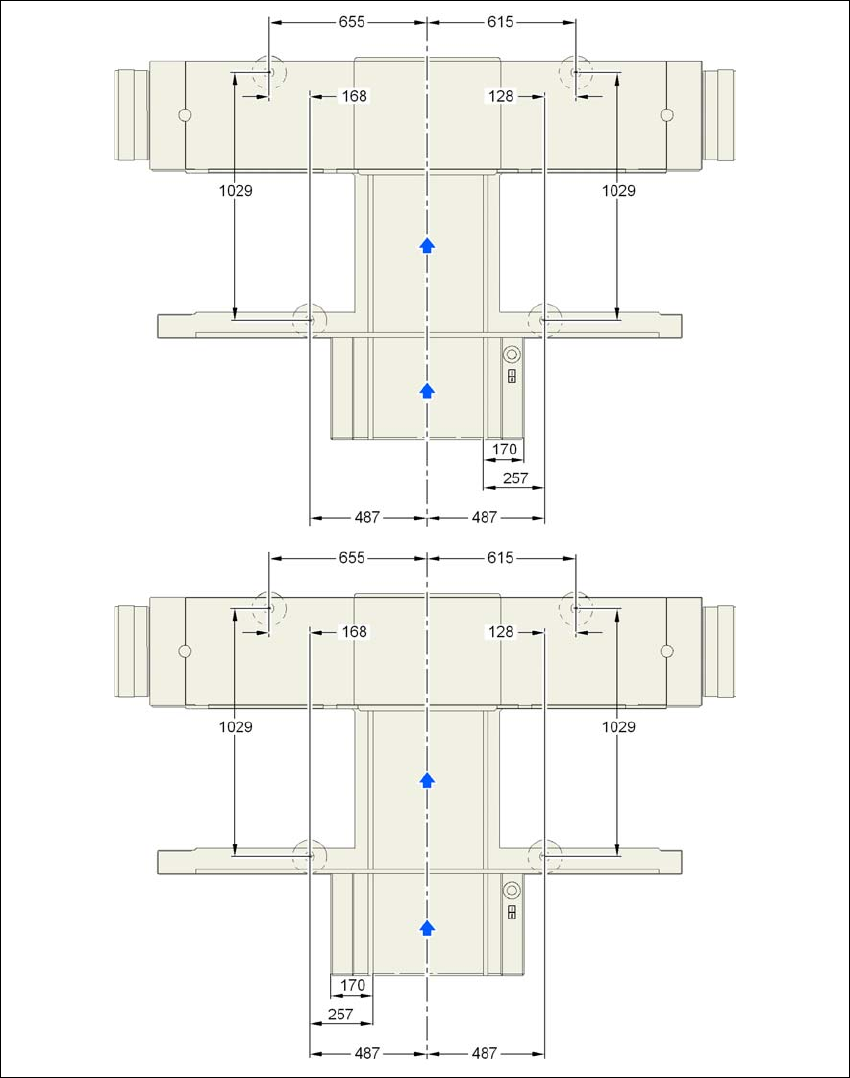 4.3.7 Abstandsmaße der Maschinenfüße und der festen LP-Transportkanten