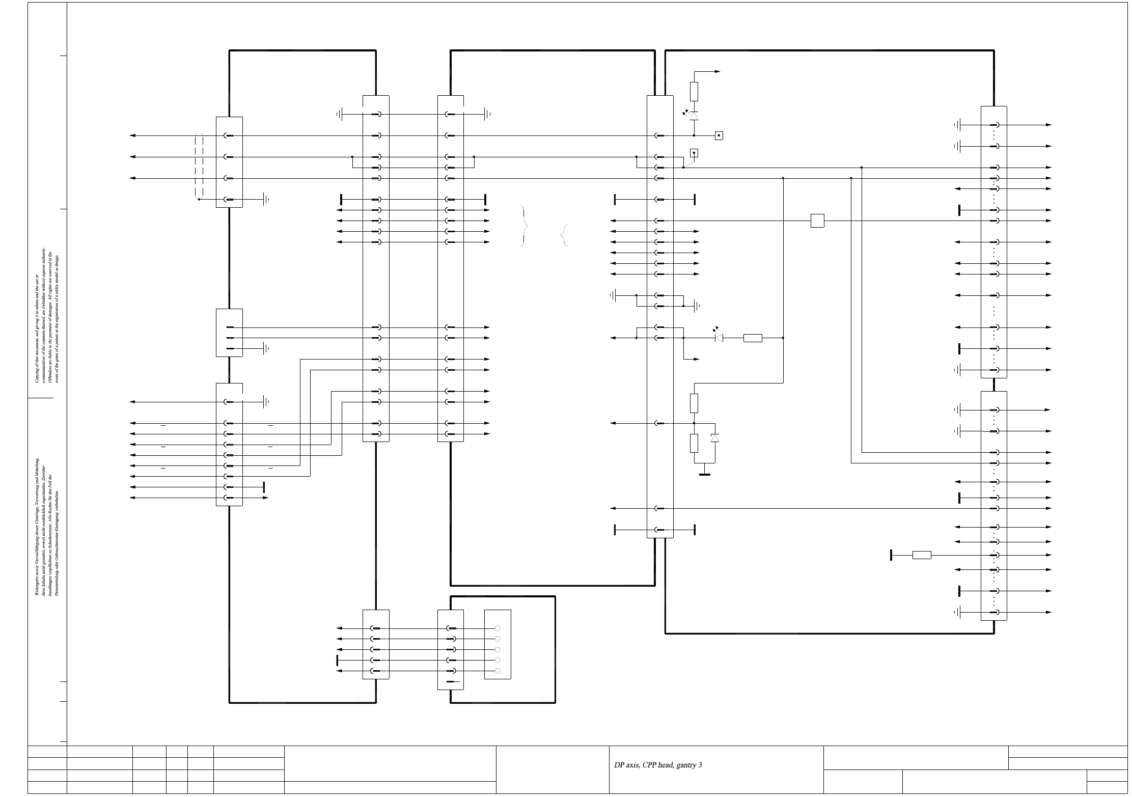 2 - 95 DP03_CPP-010101LD3 DP-Achse, CPP-Kop f, Portal 3, SIPLACE X2/X3/X 4/X4I (Bl. 1 v . 3) DP axis, CPP head, gantry 3, SI PLACE X2/X3/X4/X4I (sh. 1 of 3) X18 Voltage VCC VCC3 +24V Color GN GN H26 H27 H25 GN LED 030547…