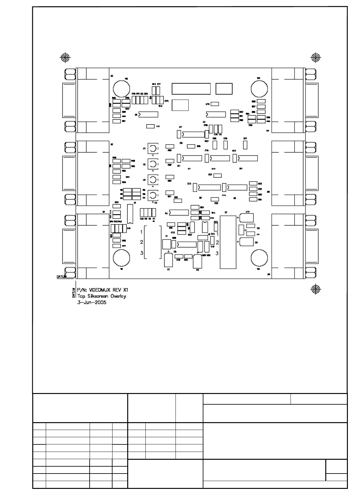 4 - 34 03032345-010101ND4 Video-Mu ltiplexer/-Spl itter MATERIAL FR4 COPPER THICKNESS Scale / Maßstab 1:1 Format A4 THICKNESS 1.6mm 35um 4 LAYER BOARD ASSEMBLY – TOP SIDE Date Name Drawn. Checked 06.June.05 Eric Standard…