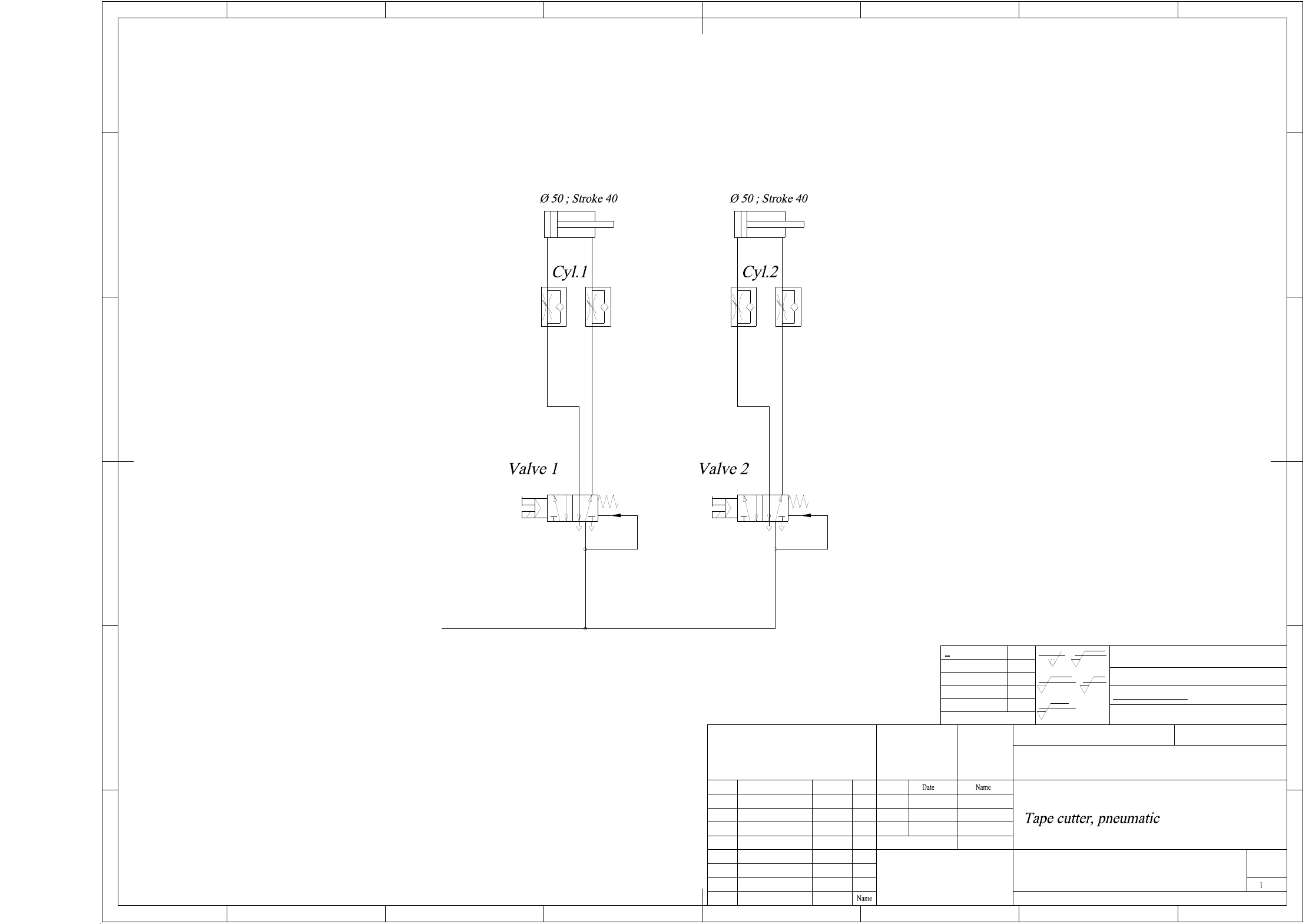 5 - 1 5 Pneumatikpläne / Pneumatic diagrams 03000487-050301XD3 Schneidgerät pneum. T ape cutter , pneum. Ø 50 ; Hub 40 Ø 50 ; Hub 40 Zyl .1 Zyl.2 Compres sed ai r supply from p neumati c block of the machine 5.2 bar Ven …