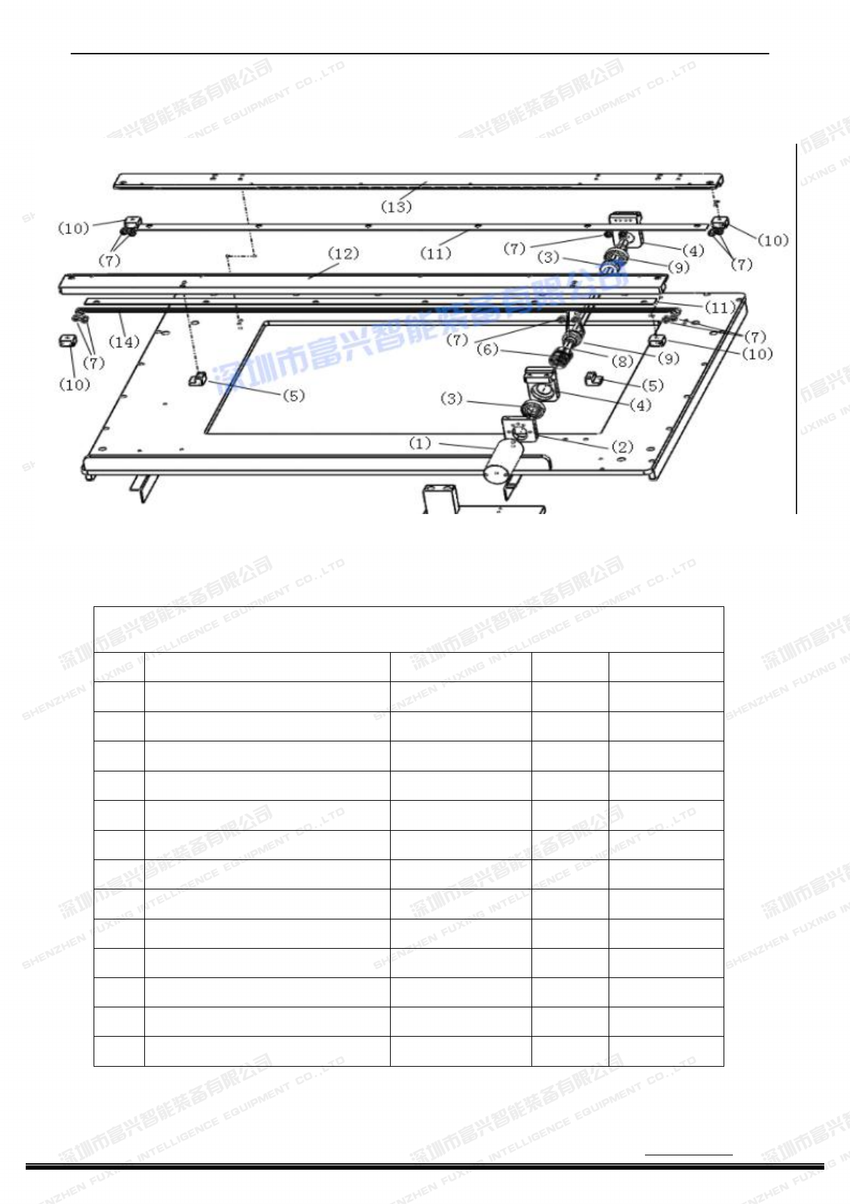 深圳市富兴智能装备有限公司 http:// www .fuxingai.com http:// www.fxznsmt.com - 99 - 工作台零件 清单 序号 中文名称 编号 台/用量 备注 1 平板电机 FXR-GZ21014 1 2 平板电机马达座 FXR-GZ21015 1 3 轴承 FXR-GZ21043 2 4 平板电机支座 FXR-GZ21044 2 5 导轨定位座 FXR-GZ21045 2 6 联轴器 FXR-GZ…