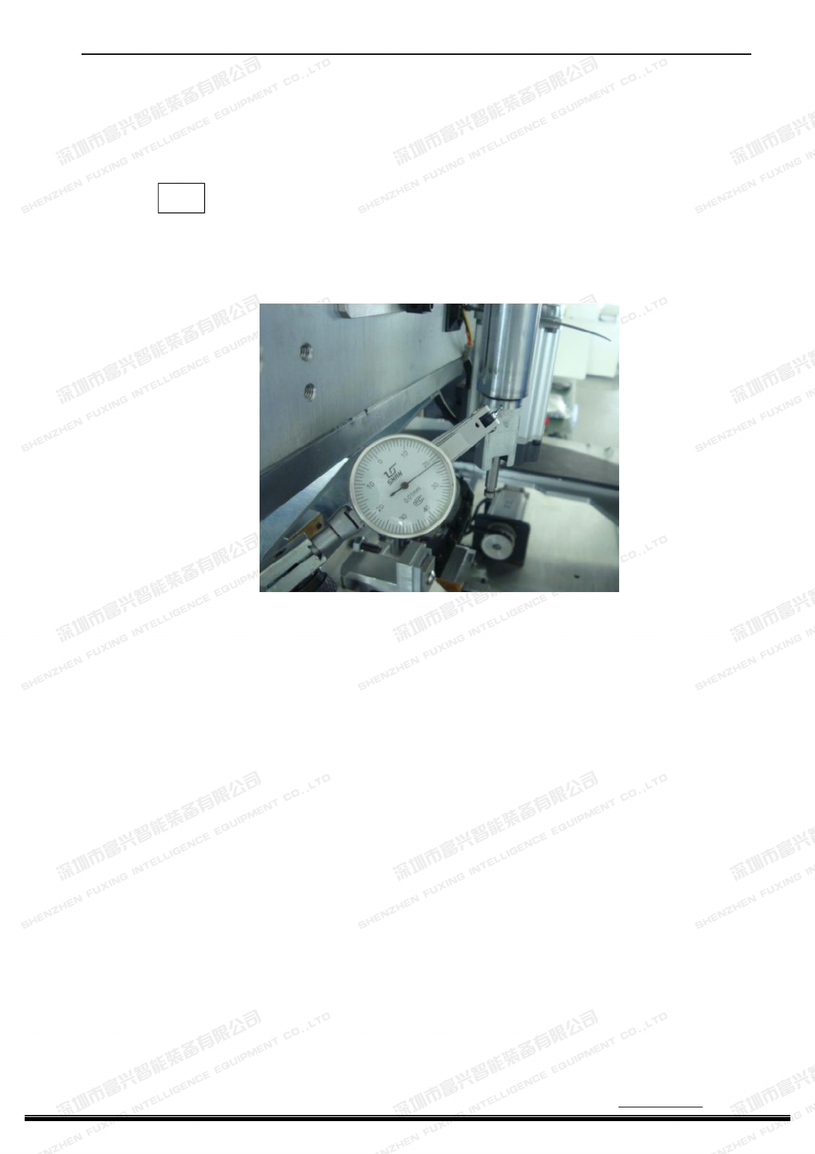 深圳市富兴智能装备有限公司 http:// www .fuxingai.com http:// www.fxznsmt.com - 104 - 二、调整。 1、插件头调整。 1 ) 调 整 主轴 FXR-TB06004 旋 转偏心 度。 用 百 分 表来 测 量 , 将 主 轴由 上向 下 慢慢移 动并且旋转一周,百分表的读数误差在(0.01-0.03)mm ,主轴左右前后不恍动是合格。 调整插件头本体主爪中心位置。放上料在夹具上,校对…