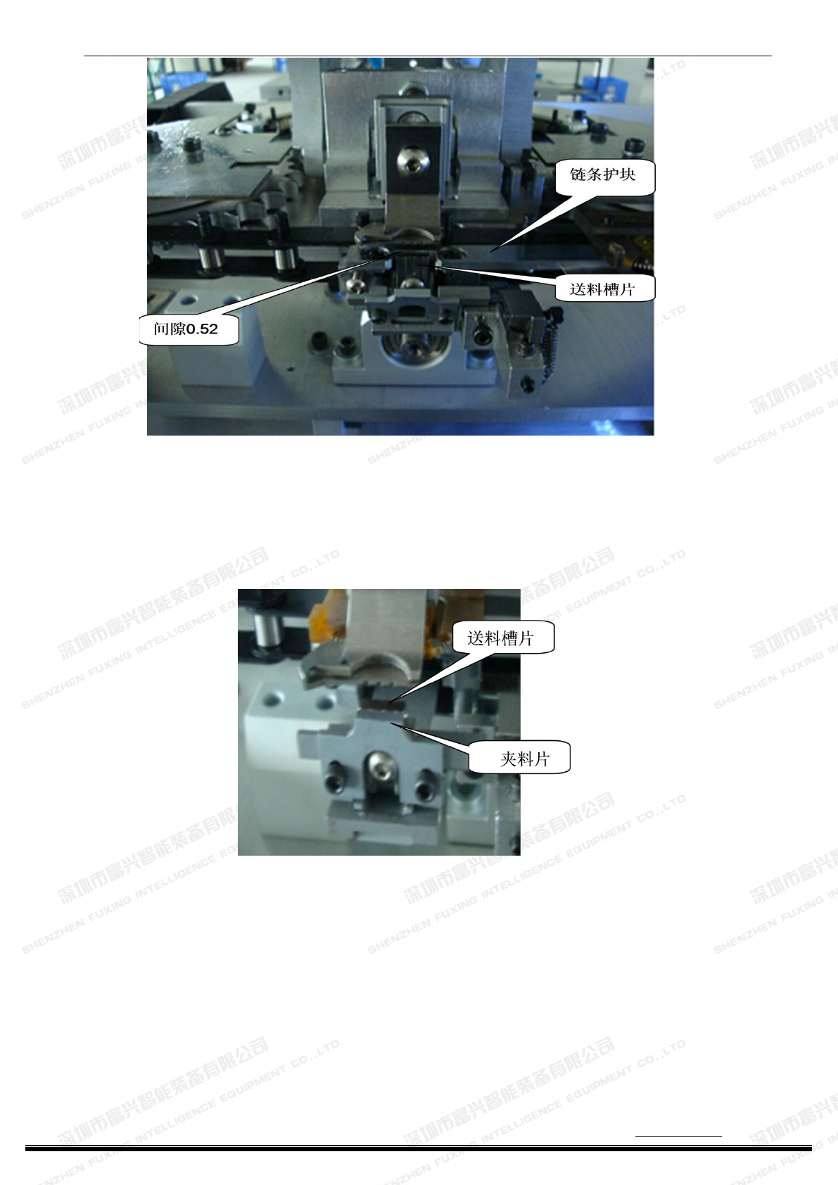 主要是保证送料槽片与链条护块之间不会碰撞,以免损坏弯钩。