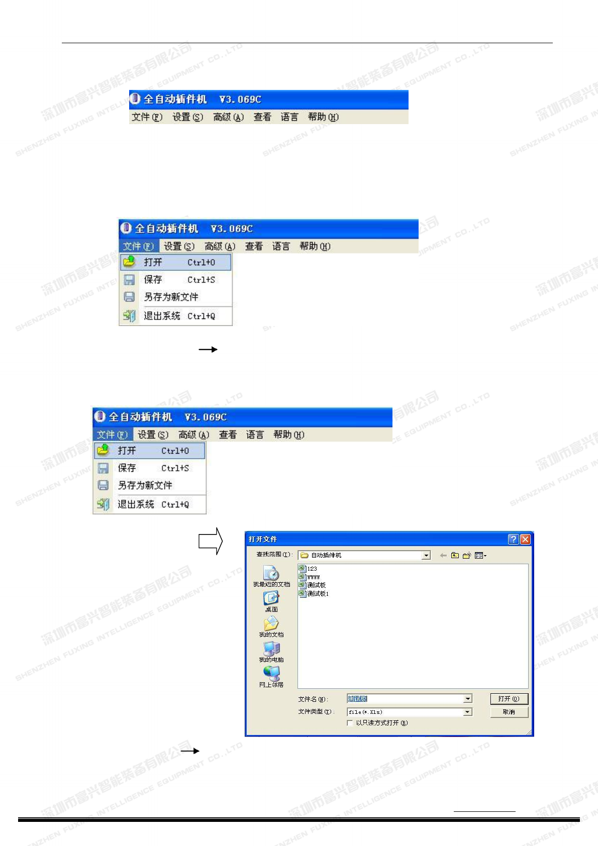 深圳市富兴智能装备有限公司 http:// www .fuxingai.com http:// www.fxznsmt.com - 14 - X:表示 X 轴坐标值。本机器采用公制、绝对坐标。1 毫米=100; Y:表示 Y 轴坐标值。本机器采用公制、绝对坐标。1 毫米=100; Dire:角度。基于元件在链夹上的位置为零度时,元件的实际插入的角度。正数是顺时针方 向,负数是逆时针方向; HolD:插入点孔径; PartNO:零件编号;…