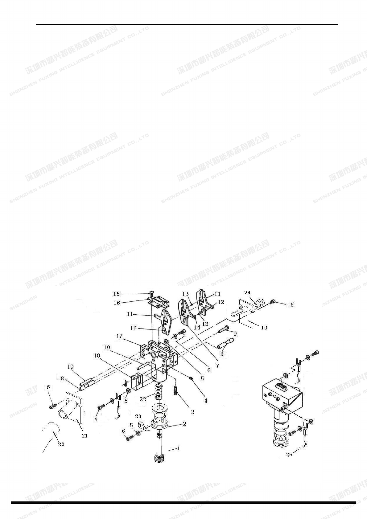 DZ07025 检测杆上的螺丝,把检测线拉出来取下吹脚气管和废料管就可以把整个剪脚头拿出