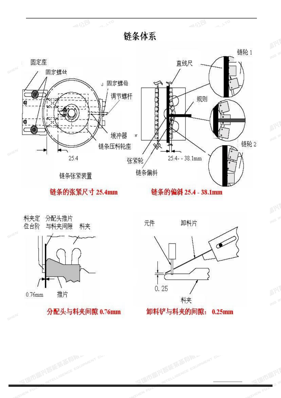 把保养好的链条张紧部分按照刚才拆除的反顺序把它们安装到机器上,按照说明书链