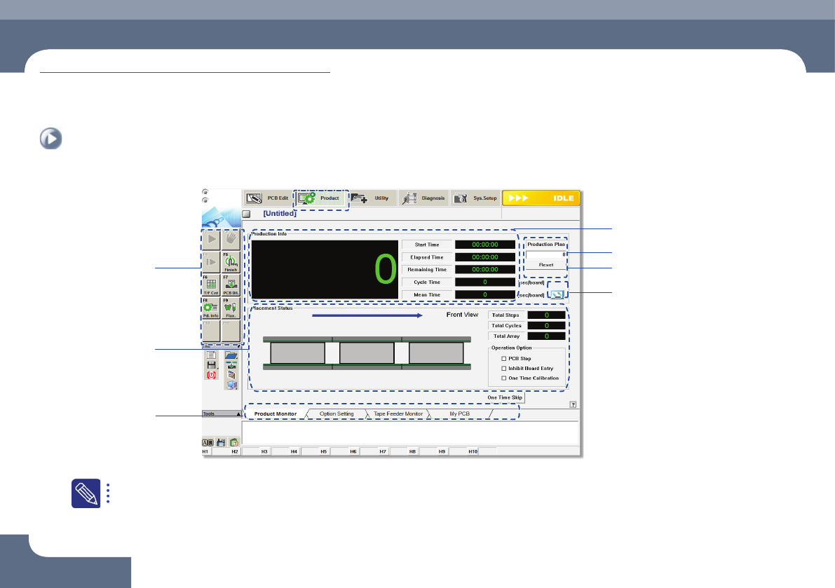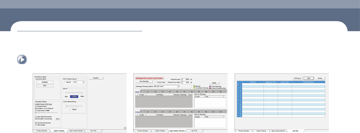 'Option Setting' dialog box 'Tape Feeder Monitor' dialog box 'My PCB' dialog box