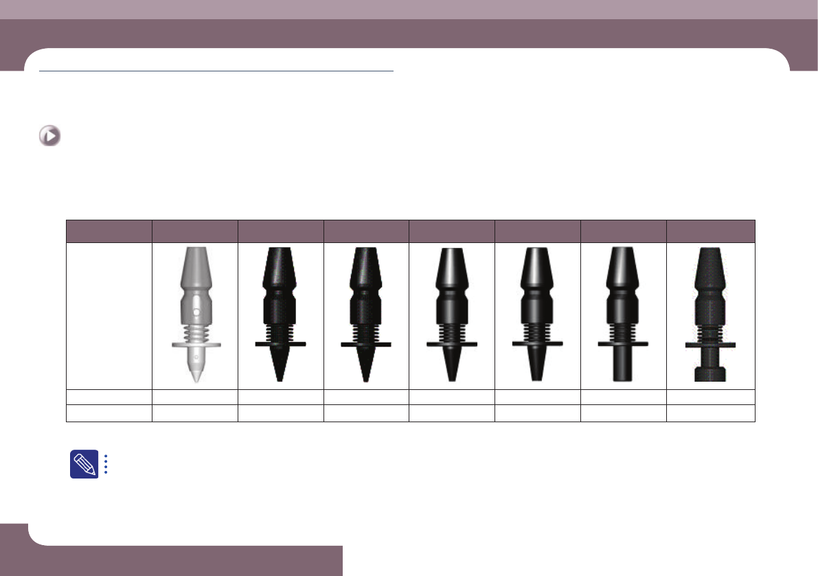 Preparation For Operation Ⅰ > Nozzle type and applied part