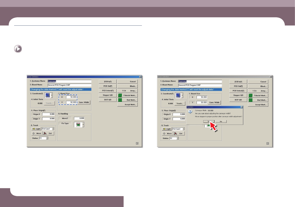 DE CAN S 1 Ope ra tio n Han db oo k 3-1 5 Chap ter 3 This chapter describes the production procedure. Pr oduction Nex t Generation, Multi- Funct ional Placer Pr epara tion F or Oper atio n Ⅱ > Adju stin g the conv eyo…