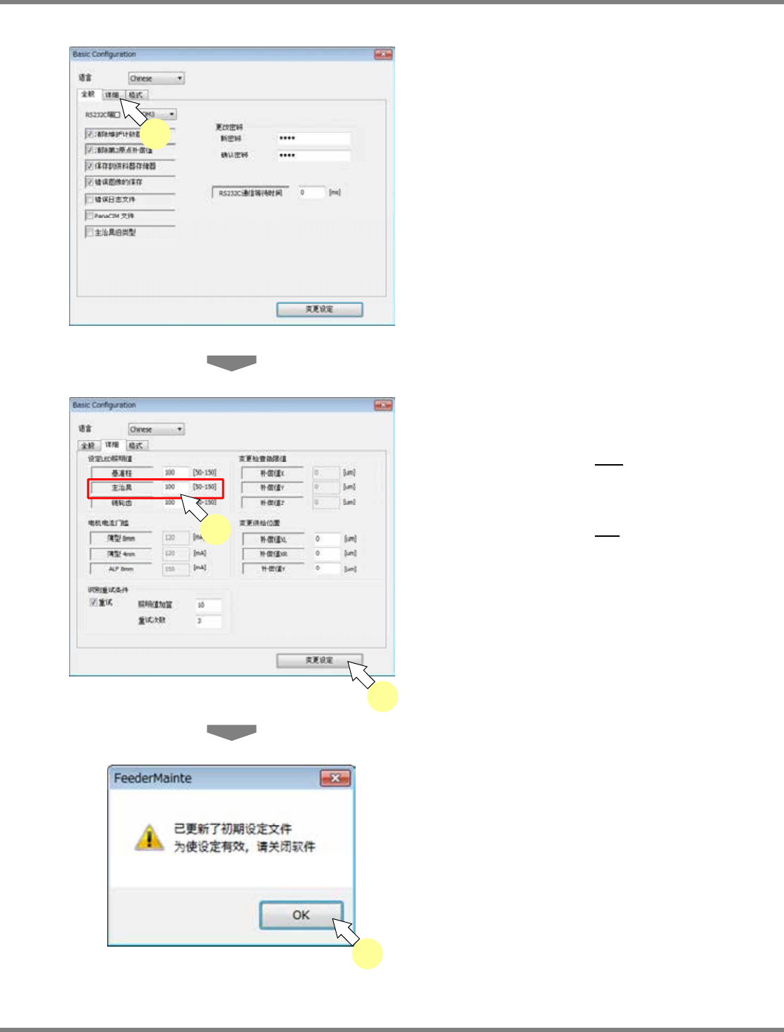 IFMU 操作手册 7.4 主治具识别错误的处理方法 Page 7-10 EJW8AC-MB-07O-06 7.4 主治具识别错误的处理方法 关于主治具识别错误的处理方法,分 为步骤 1 、 2 进行说明。 ① 步骤 1 基准孔下面的金属部对照明光的反射 有时会造成识别错误。 此时,请在照片所示位置粘贴防止反 射的黑色胶带。 主治具 黑色胶带