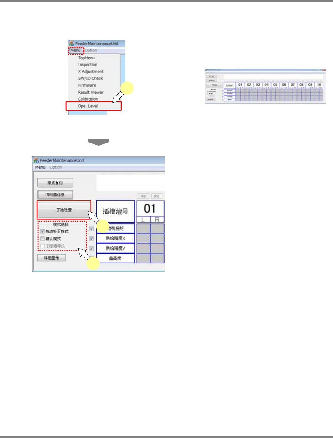 供料器维护单元具有以下检查、调整的功能。