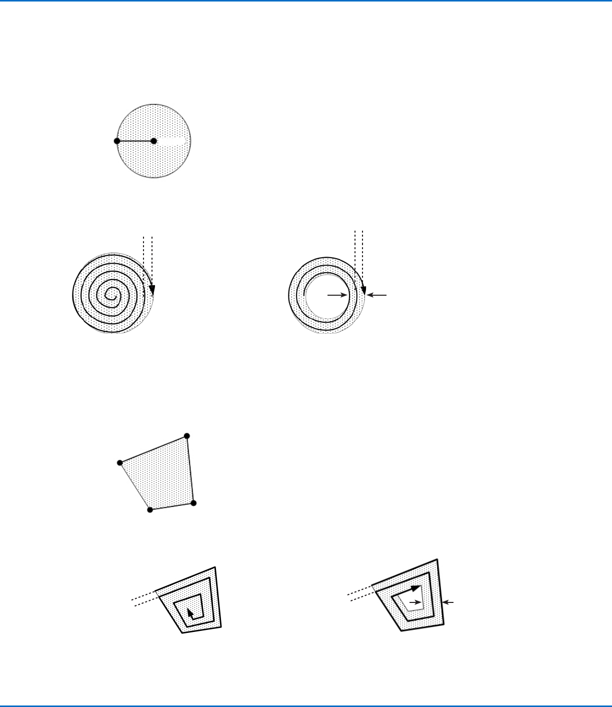 此指令使针头沿一个旋转螺旋形路径从多边形外面移动到中心。输入一个“多边形向内”指令后,在待填充区域的第一个拐角设定一