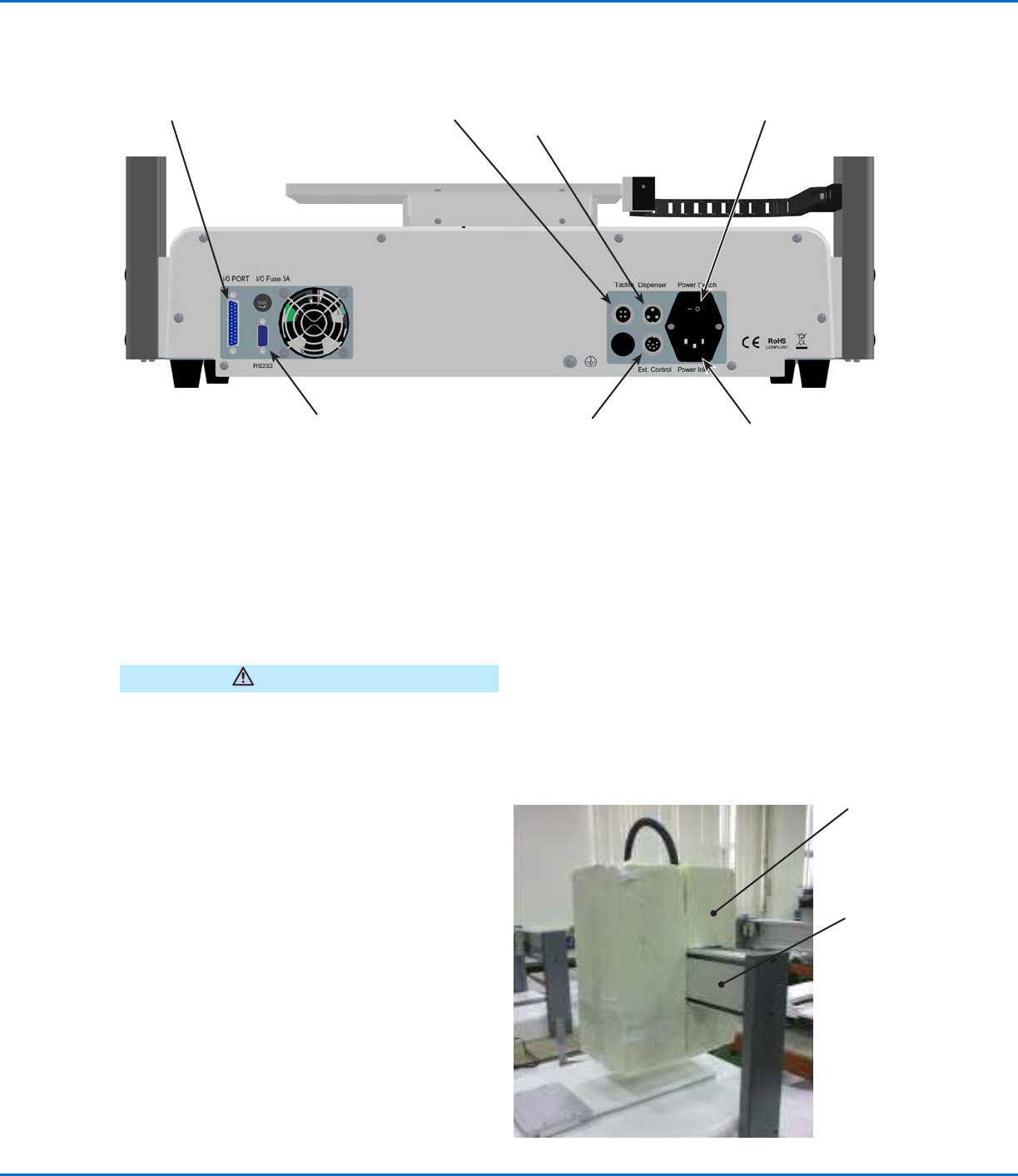 所有的自动点胶系统都有8个标准输入端口及8个标准输出端口。将输入/输出电缆连至平台后端的I/O端口。查阅第89页