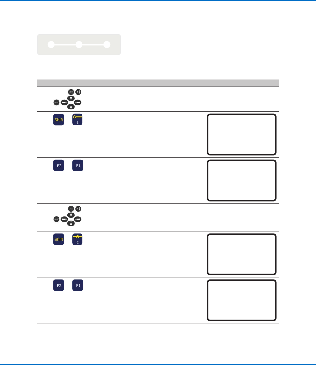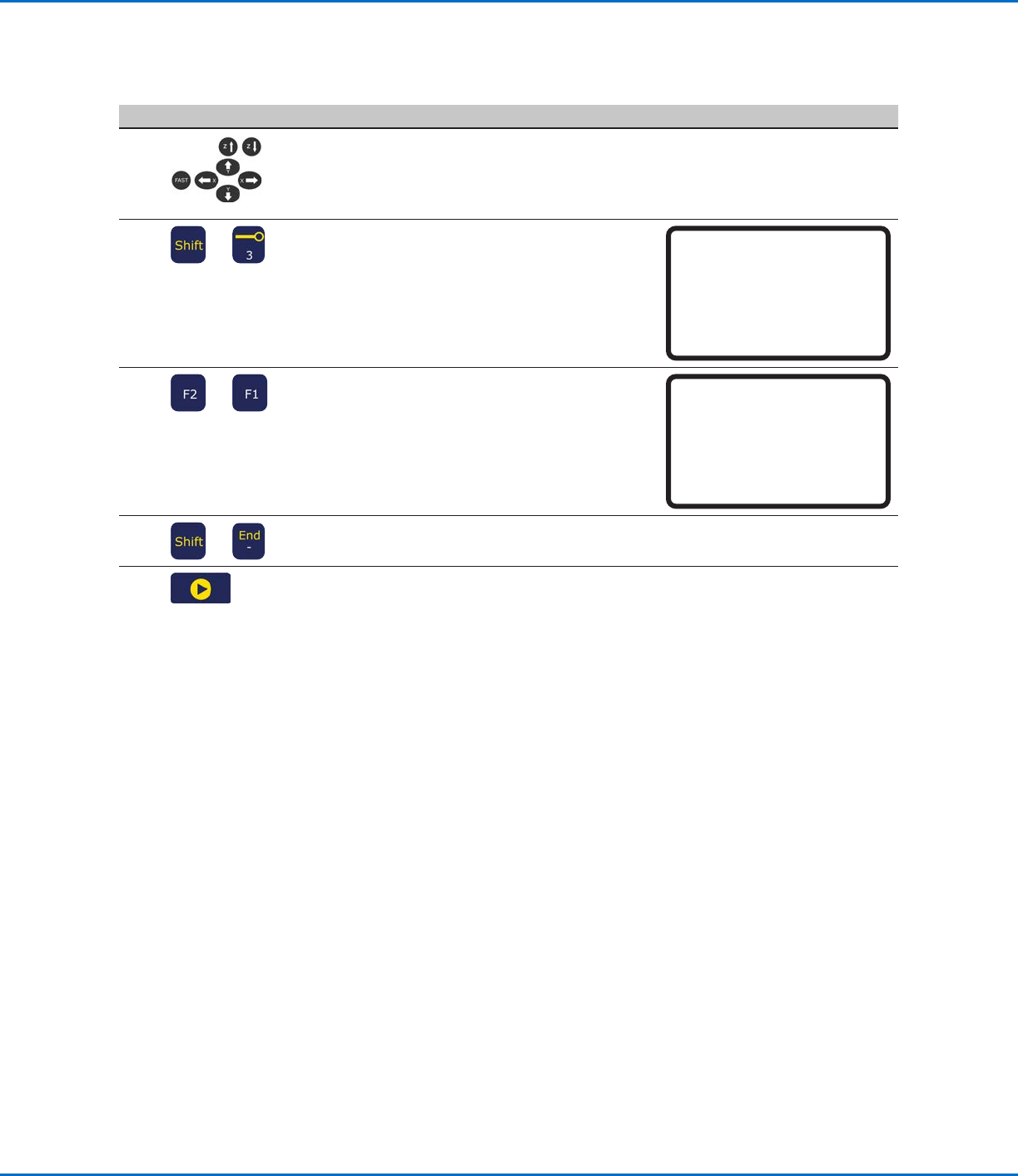 E系列自动点胶系统 64 www.nordsonefd.com/cn china@nordsonefd.com +86 (21) 3866 9006 诺信 EFD 在全球范围内销售专业点胶系统并提供技术支持服务 创建图样(续) 创建图样(续) 如何划线(续) 如何划线(续) # # 按键 按键 步骤 步骤 教导盒显示界面 教导盒显示界面 7 · 将针头缓慢移动至最后点胶点的XYZ坐标 (线结束点)。 8 > · 按下切换> …