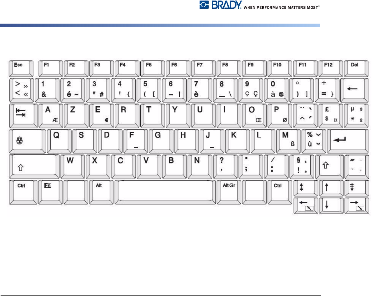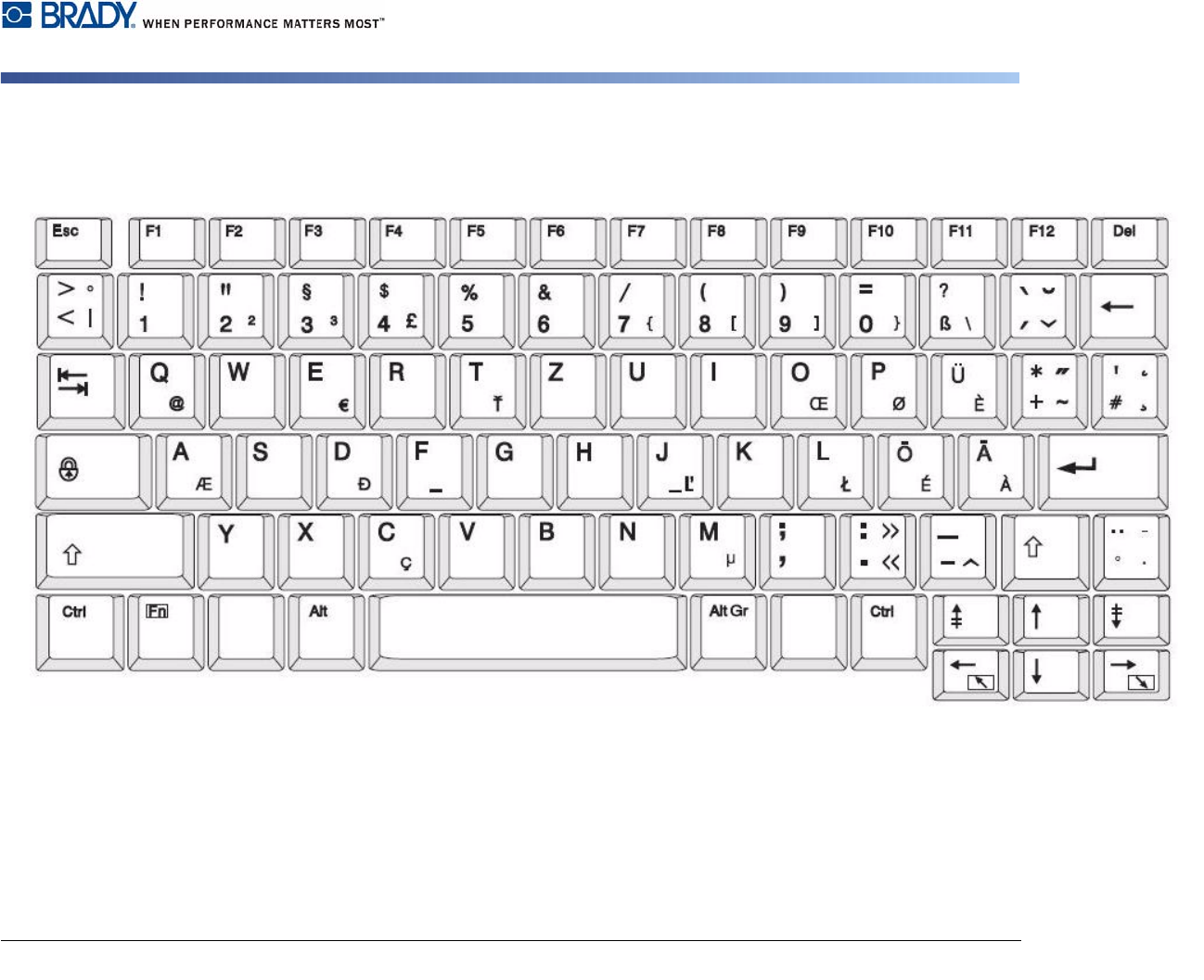 BBP ® 31 标志和标签打印机 用户指南 B-9 键盘布局 Chinese Simplified Figure 6. QWERTZ - 欧盟键盘配置