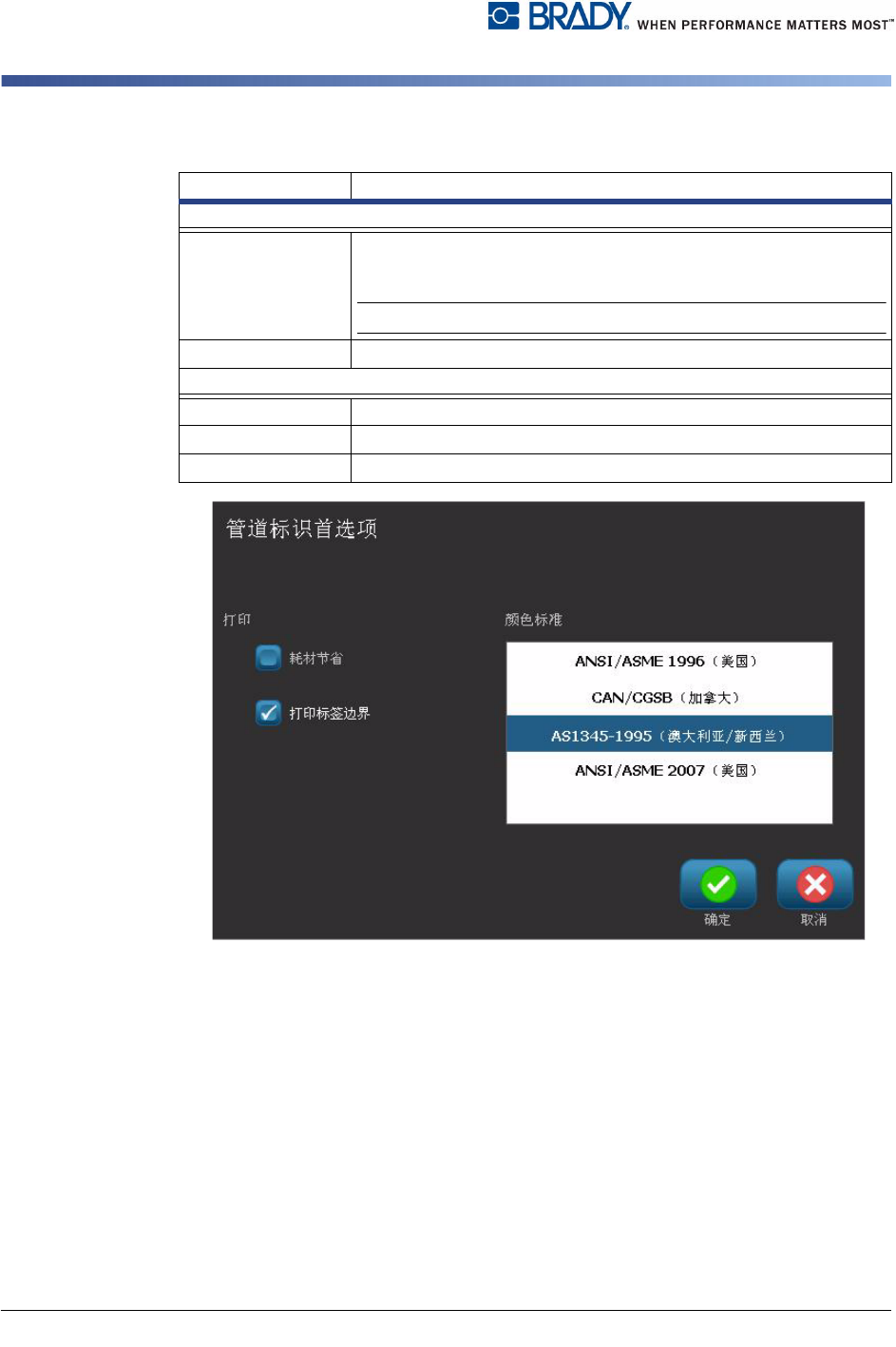 BBP ® 31 标志和标签打印机 用户指南 C-3 管道标识 创建管道标识标签 创建管道标识标签 使用这些步骤创建管道标识标签 。 有关设置颜色标准和其他管道标识首选项的 说 明,请参阅 第 C-1 页的 “ 设置管道标识选项 ” 。 要创建管道标识标签: 1. 从 主页 中,选择 管道标识 。 - or - 选择 更多标签类型 ,然后选择 管 道标识 2. 从 管道标识 面板中选择 创建新文件 。 3. 从 管道标识样式 对话框中,…