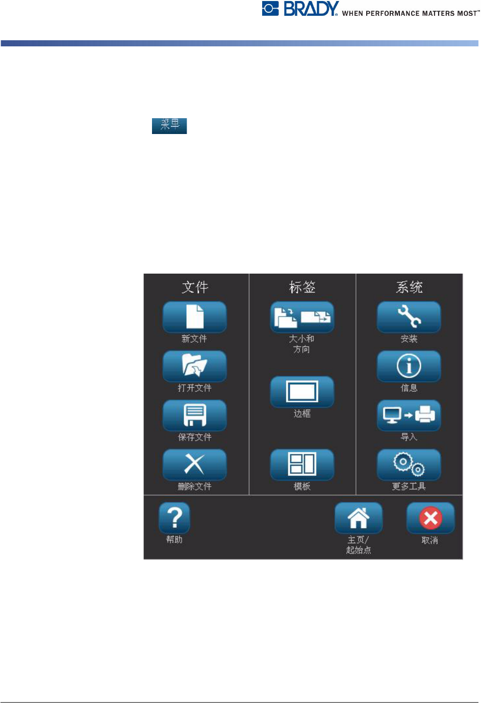 BBP ® 31 标志和标签打印机 用户指南 1-5 关于菜单、对话框和屏幕 工具面板 工具面板 工具 面板包含用于编辑标签的选项。 如果没有选择标签,则该面 板仅包含 “ 帮助 ” 按钮。 “ 撤销 ” 仅在有可撤销的操作时才可 用。 “ 删除 ” 和 “ 大小 ” 仅在选定对象时才可 用。 “ 帮助 ” 、 “ 放大 ” 和 “ 缩小 ” 按钮始终可 用。 “ 工具 ” 面板包含以下选项: 图标 描述 删除 : 删除所选的对象 (文…