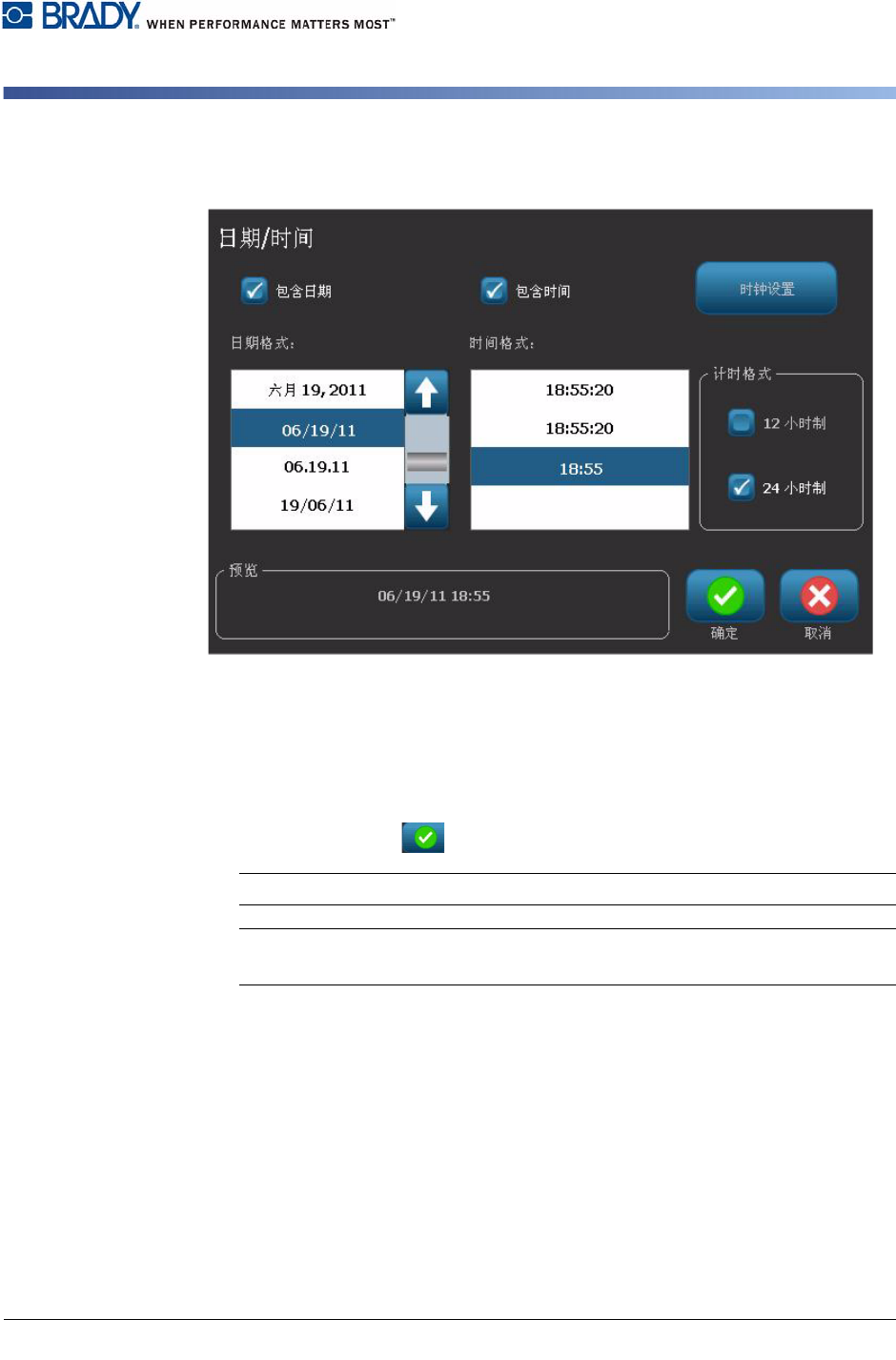 定进入时钟设置。 选择取消返回