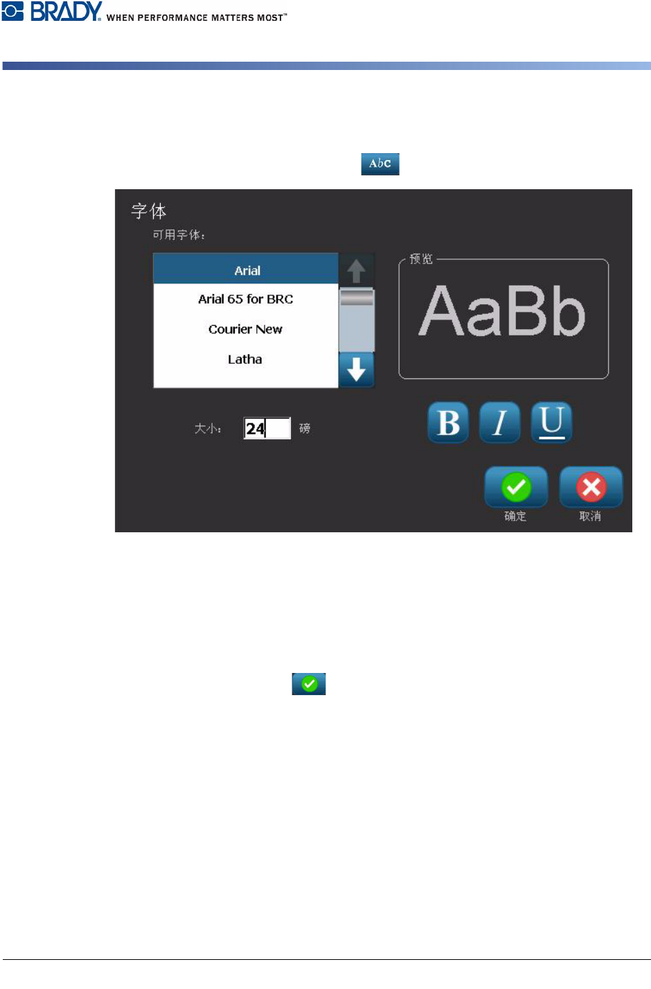 4-14 BBP ® 31 标志和标签打印机 用户指南 使用文本 垂直文本 水平文本对齐 使用本节步骤设置或更改对象中文 本的水平对齐方式。 这主要影响包含多行的文 本 对象;对齐设置在对象的左边缘、 中间或右边缘。 Note: 水平对齐影响添加字 符时文本延伸的方式。 左对齐文本将向右侧延伸,居 中 对齐文本将同时向两个方向延伸, 而右对齐文本将向左侧延伸。 要设置文本水平对齐: 1. 在 编辑器 中,选择想要更改的文本对象。 2. …