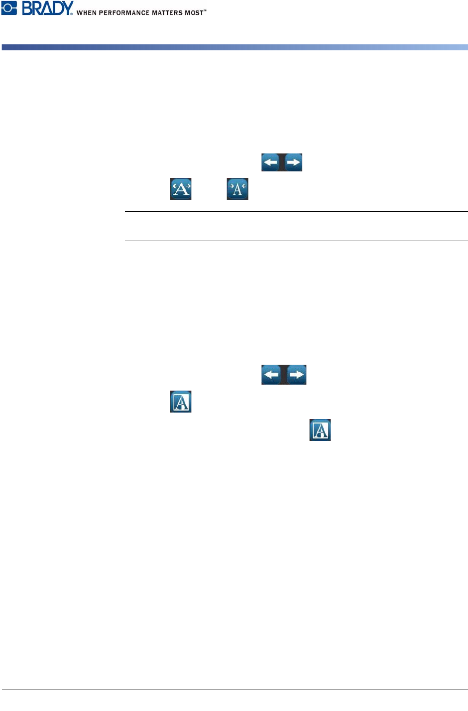 BBP ® 31 标志和标签打印机 用户指南 4-15 使用文本 反色文本 加宽或紧缩文本 使用本节步骤水平加宽或紧缩文 本字符。 这不会更改字体大小。 要加宽或紧缩文本: 1. 在 编辑器 中,选择想要加宽或紧缩的文 本对象。 2. 在 控制面板 中,选择 更多选项 导航到 加宽 / 紧缩 控件。 3. 选择 加宽 或 紧缩 。 文本立即在标签上加宽或 紧缩显示。 Note: 文本可以 10% 为增量加宽或紧缩 50% 至 200% …