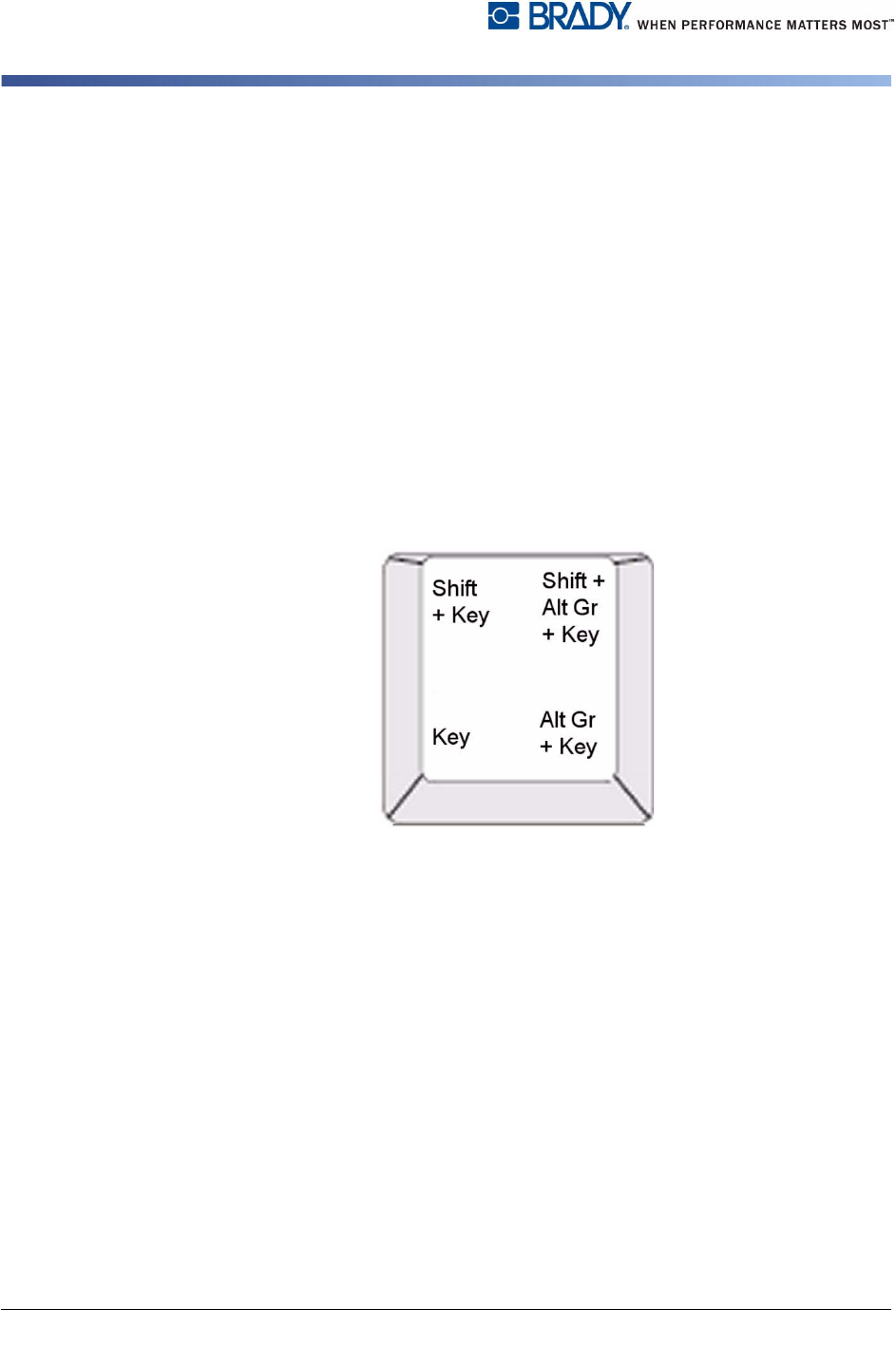 使用标准 PC 键盘的情况下,当与 <Shift> 键和 <Alt Gr> 键组合使用时,每个字