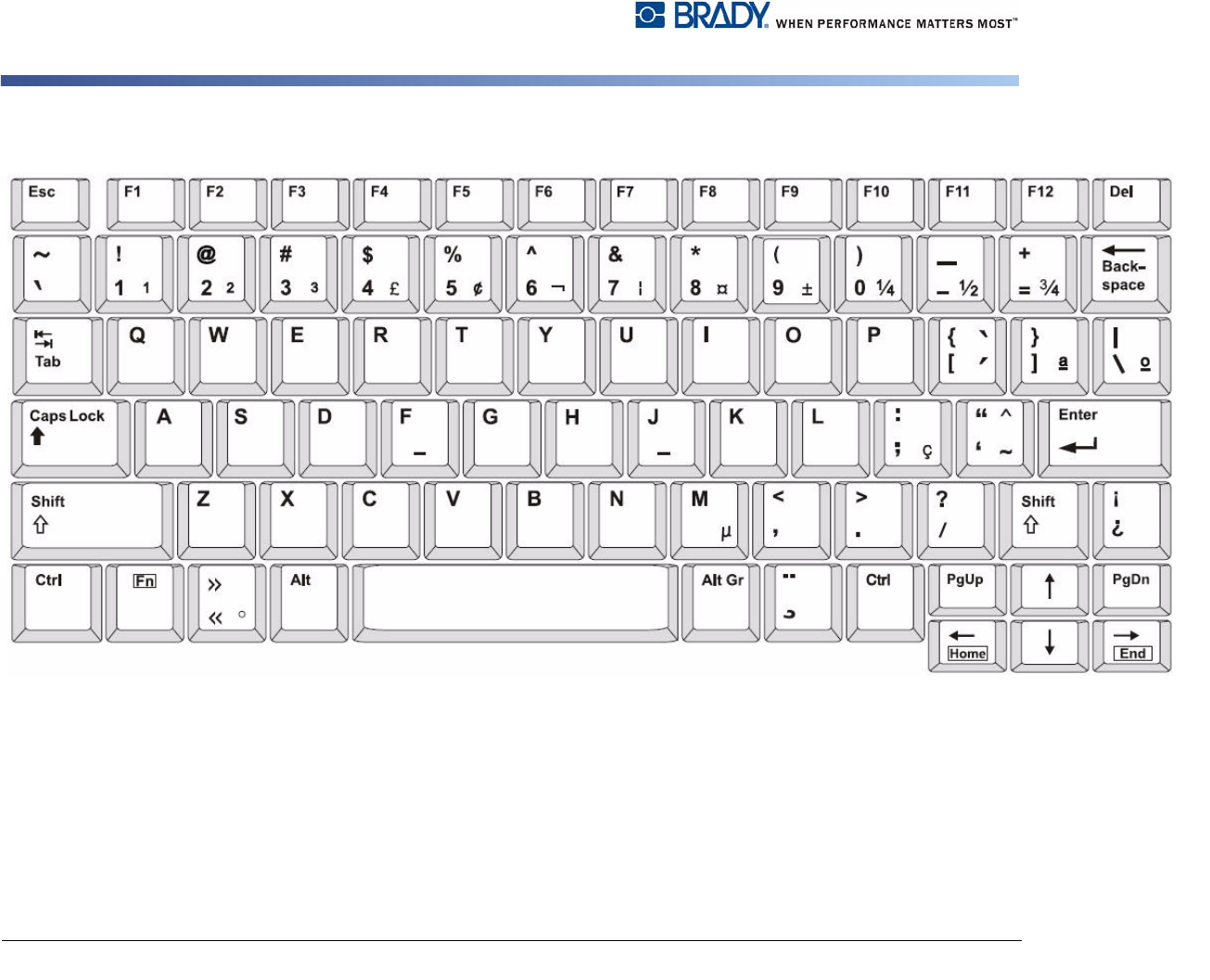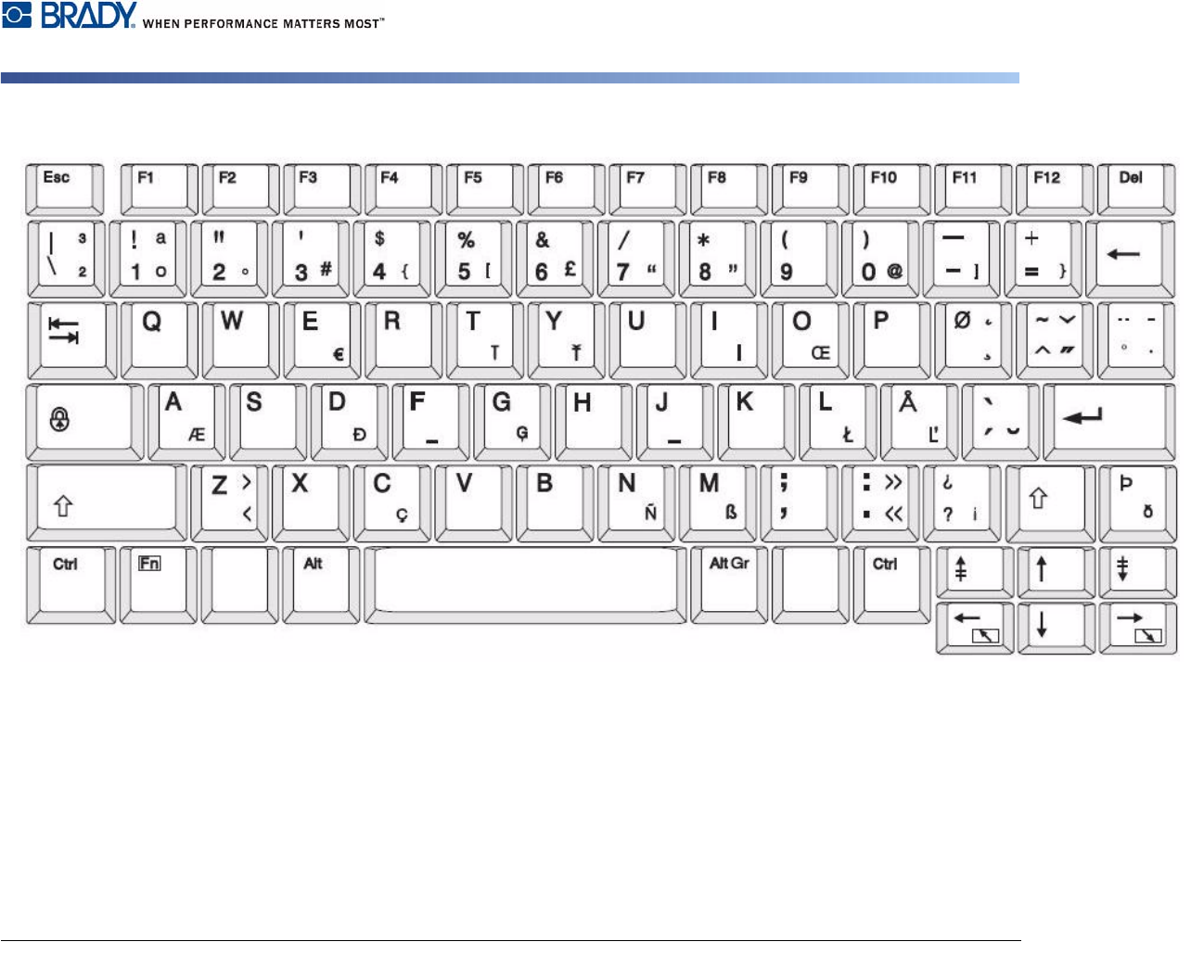 BBP ® 31 标志和标签打印机 用户指南 B-7 键盘布局 Chinese Simplified Figure 4. QWER TY - 欧盟键盘配置