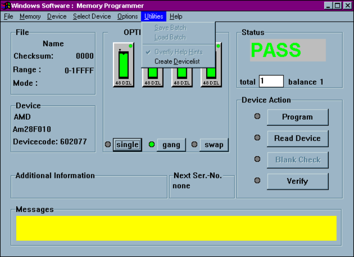 To create a device list, select Utilities>Create Devicelist. The following screen