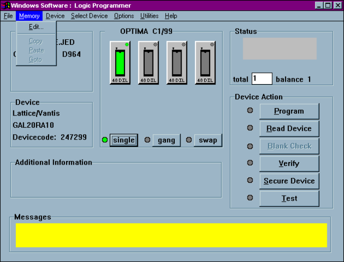 Selecting Memory>Edit from the Memory menu will produce the following screen: