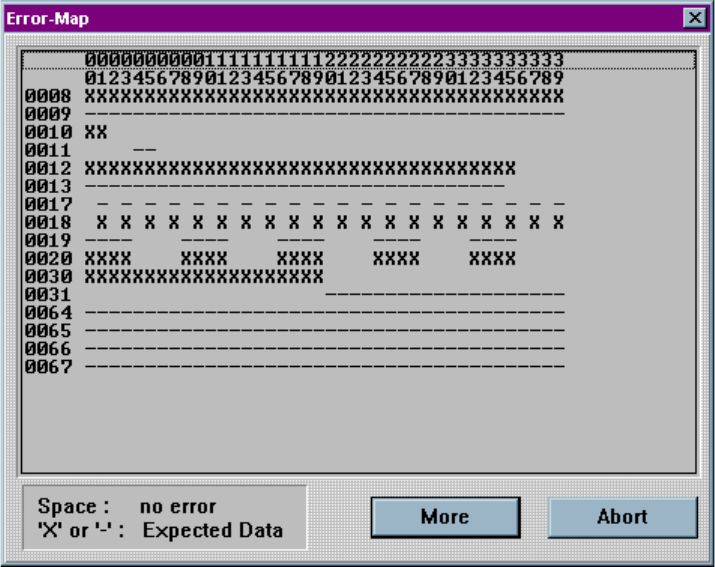 OPT IMA PAL SO FTW ARE Opti ma User M anual 114 If you select < YES >, then the follow ing screen appears: Device error ma p follow ing a verify failure On the screen abov e, there are indications of the dev ice lo…