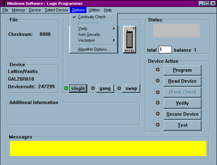 device requires blank check. If a device is not blank during the programming