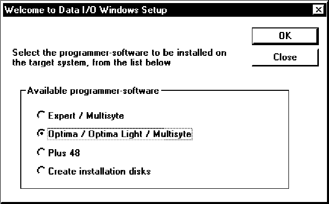 Welcome to Data I/O Windows Setup dialog box: