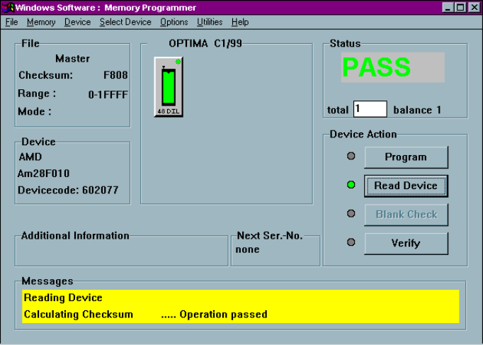 After you have selected the device, you are ready to read the Master Device. To read