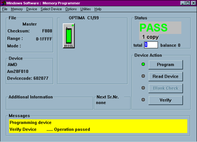 QUICK ST ART Opti ma User M anual 21 Programming a M emory Device By Loading A Dat a File If you wish to pr ogra m a me mor y-bas ed de vice a nd you will be lo ad ing a d at a f ile, follow this procedure. S ELECT T HE …