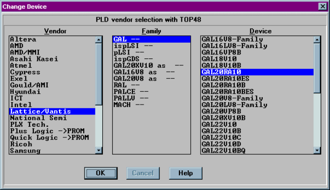 4. Click on a device part number from the Device list. In this example, a Lattice