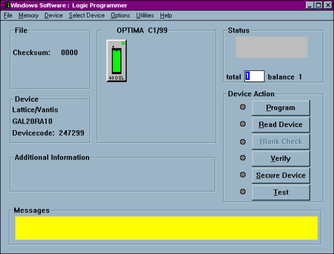 QUICK ST ART Opti ma User M anual 33 Programming a Logic Device By Loading A Data File If you wish to pr ogra m a lo gic-ba se d de vice and you will be lo ad ing a d at a f ile, fo llow this procedure. S ELECT T HE DEVI…