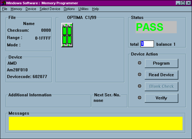 displays the word PASS and the checksum for the data loaded into RAM is