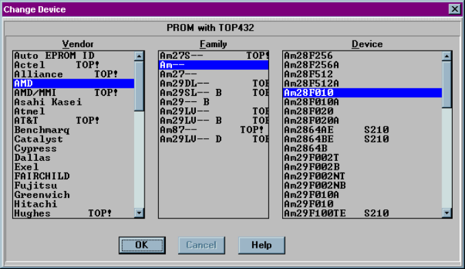AMDAm28F010 is selected: