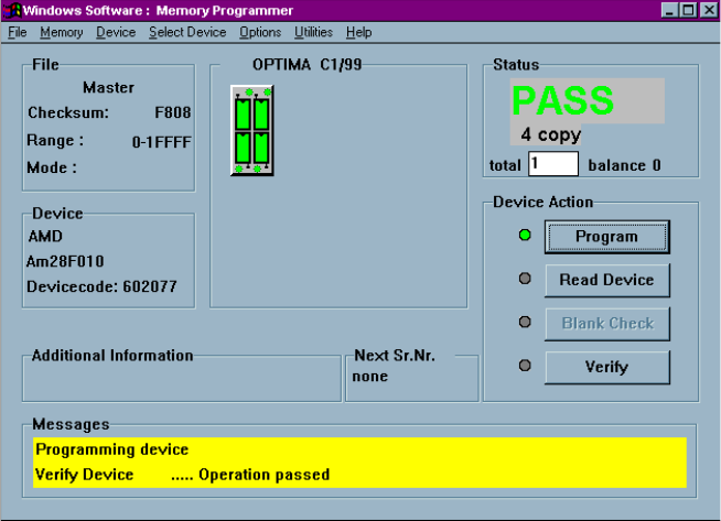 There are buttons for Program, Read Device, Blank Check, and Verify