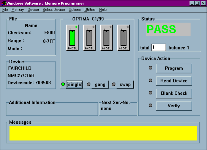 PROM software Main Programming screen