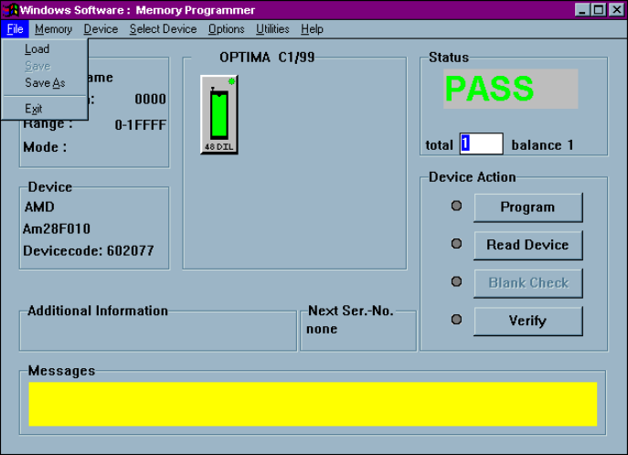 PROM software Main Programming screen