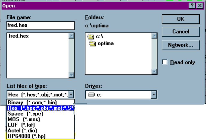 x Hex (*.hex, *.obj, *mot, *.S*) which supports data formats in Motorola