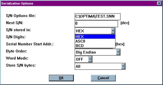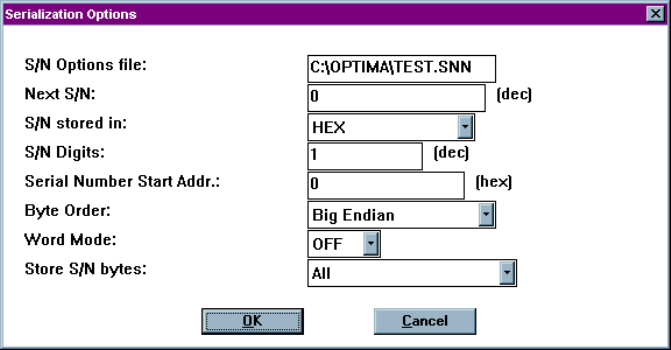 1. Select Memory > Device Serialization Options… The following screen will